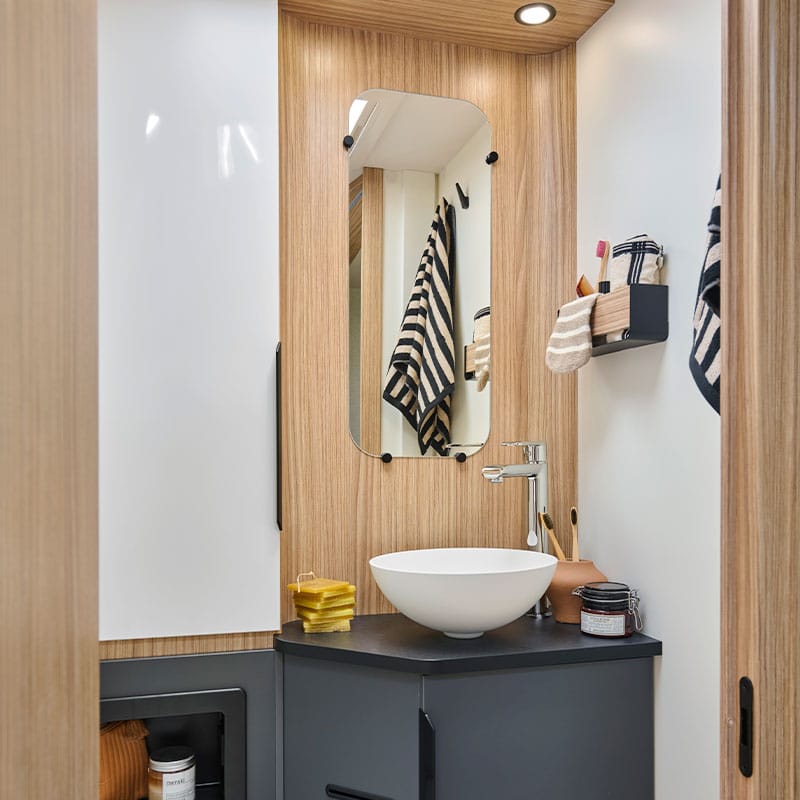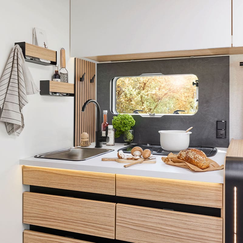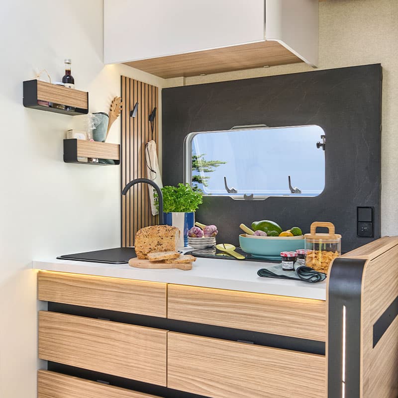 – Speakers in the living area and cab, for an immersive musical atmosphere.