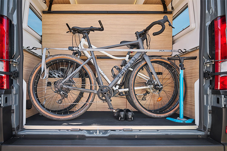 In Pilote panelvans with twin beds, the storage area is a real advantage. Located beneath the beds, it offers generous space for luggage, camping gear or leisure equipment. Thanks to the lift-up beds, it can be transformed into a genuine garage, perfect for carrying bicycles or bulky items. Practical, flexible and easily accessible, the storage compartment in Pilote twin-bed campervans adapts to every travel need.